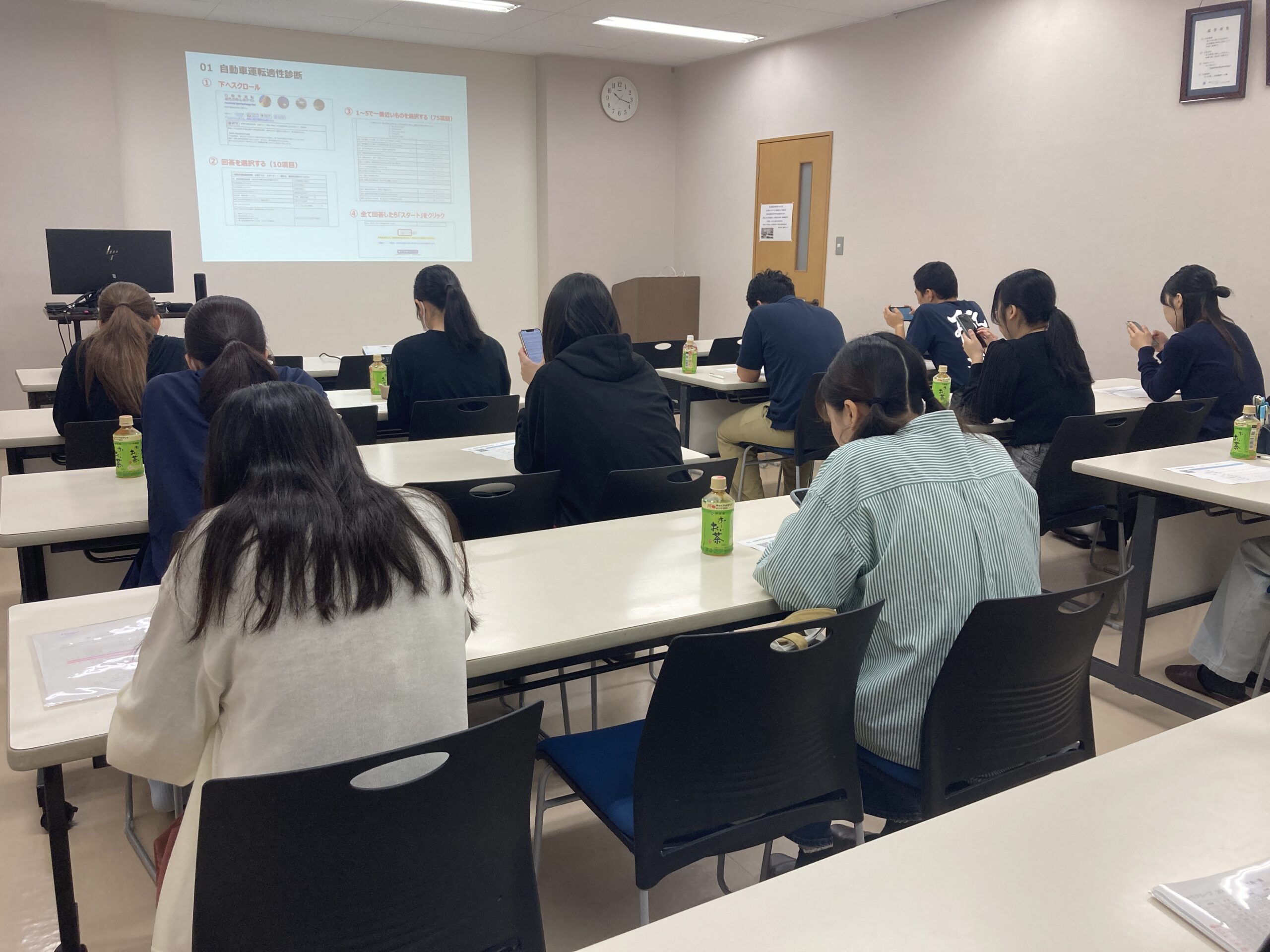 午前中は、「自動車運転適性診断」を実施し、社会人として自動車を運転する機会が増えた